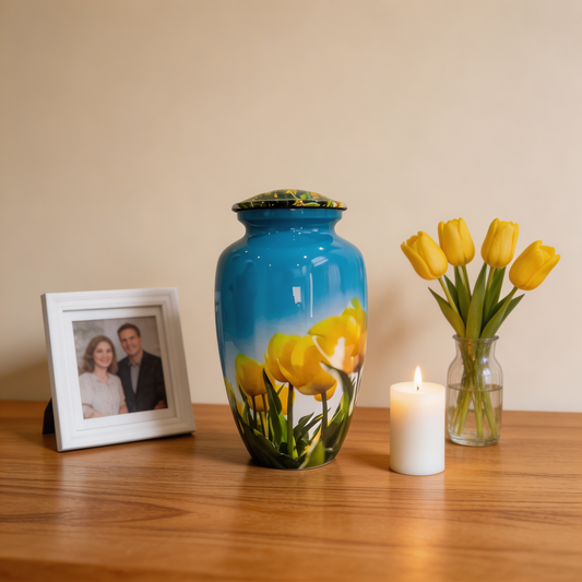 Adult Cremation Urn - Golden Tulips under Blue Sky (product code: NUYTP)