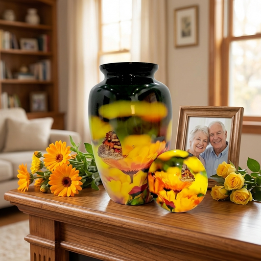 Adult Cremation Urn - Butterfly on Sunflower (product code: NUYFB)
