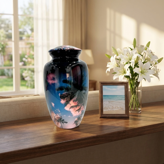 Adult Cremation Urn - Palm Trees and Blue Sky (product code: NUVSCT)
